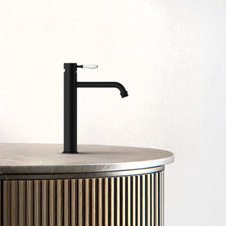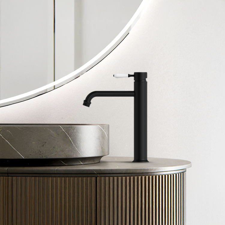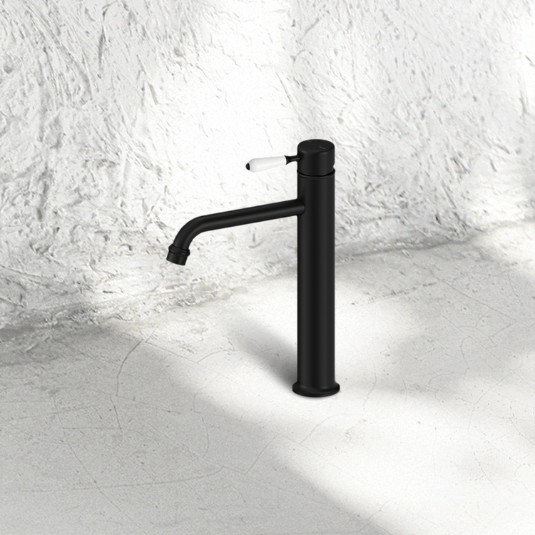 Nero York Straight Tall Basin Mixer With White Porcelain Lever Matte Black
