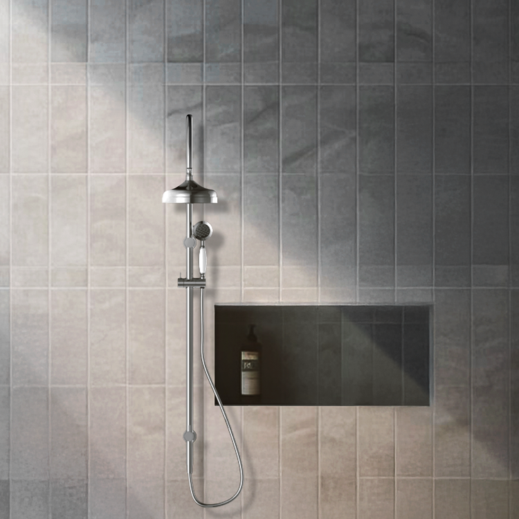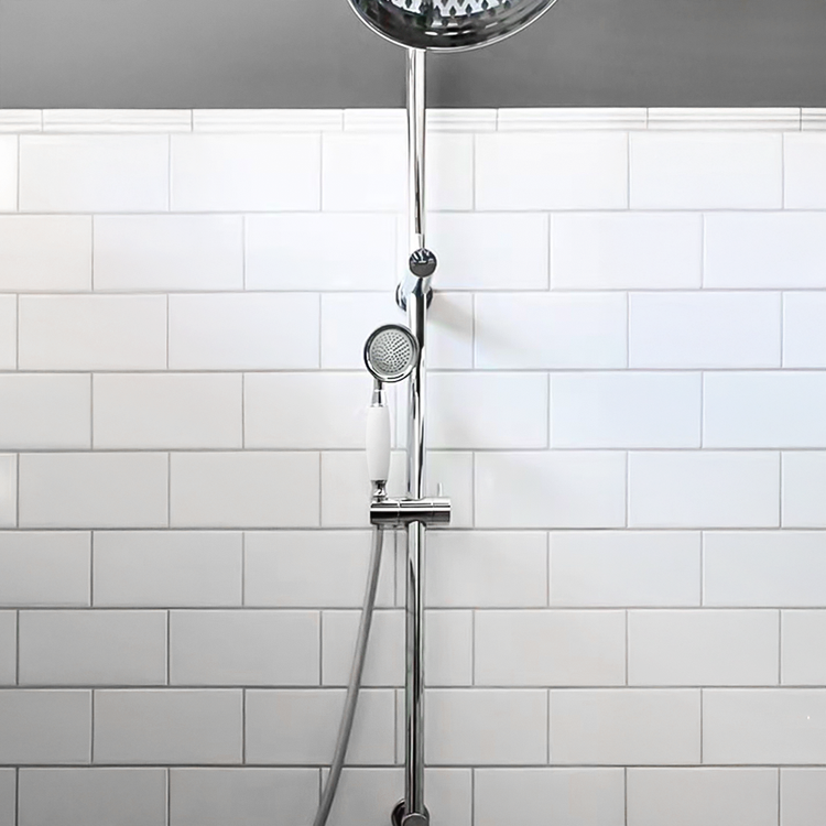 Nero York Twin Shower with White Porcelain Hand Shower Chrome