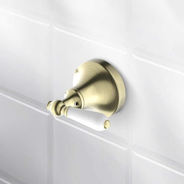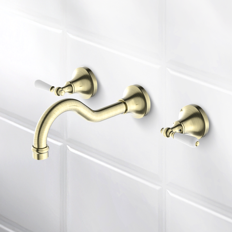 Nero York Wall Basin Set With White Porcelain Lever Aged Brass