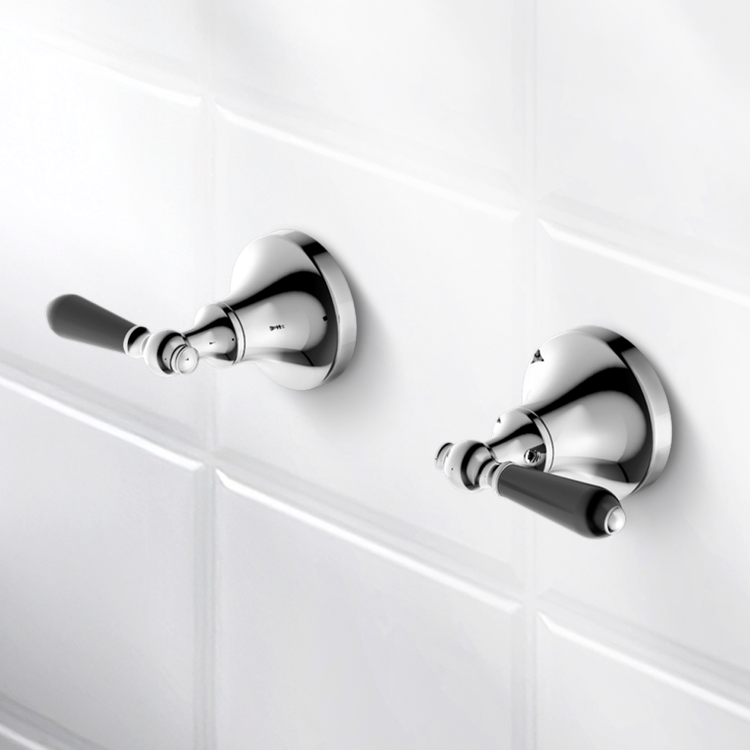 Nero York Wall Top Assemblies With Black Porcelain Lever Chrome