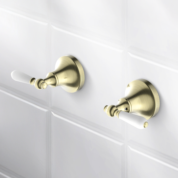 Nero York Wall Top Assemblies With White Porcelain Lever Aged Brass