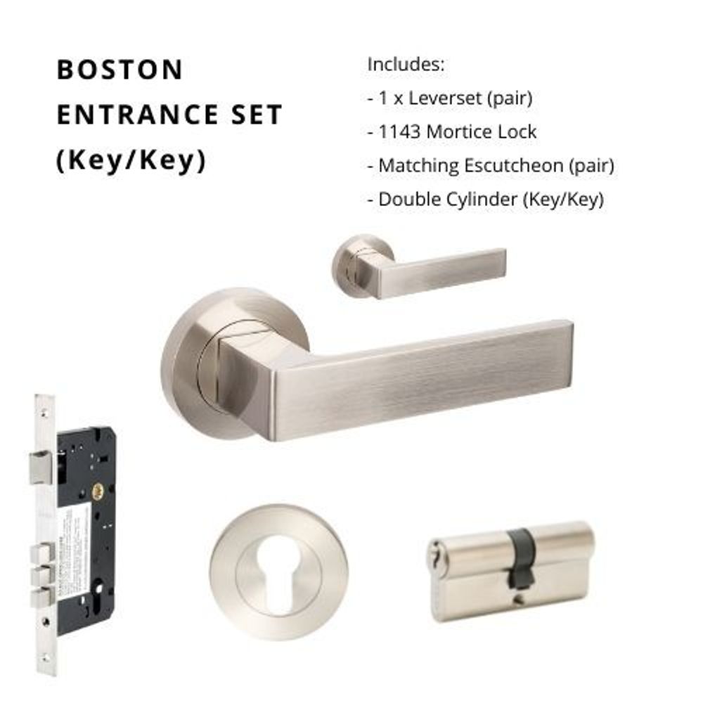 Zanda Boston Entrance Set Lever Door Handle Brushed Nickel