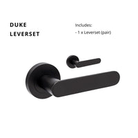 Lever Set - Lever Set Handles Only, with no latch or internal mechanism.The Duke Lever Handle, Matte Black Futura Range 15 year Warranty. 60mm Backset. 54mm screw on rose- concealed... Read more