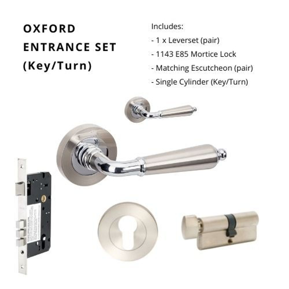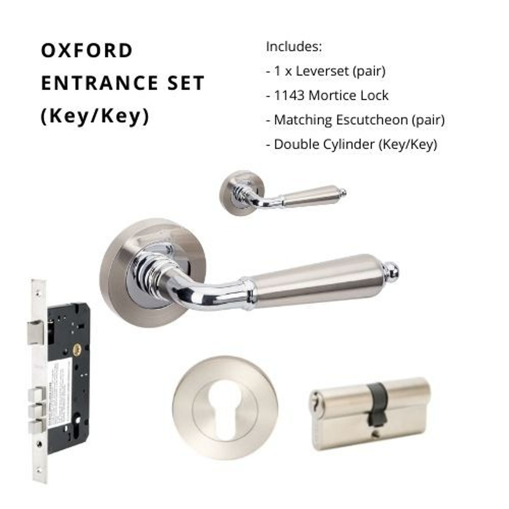 Zanda Oxford Entrance Set Lever Door Handle Brushed Nickel and Chrome Plate