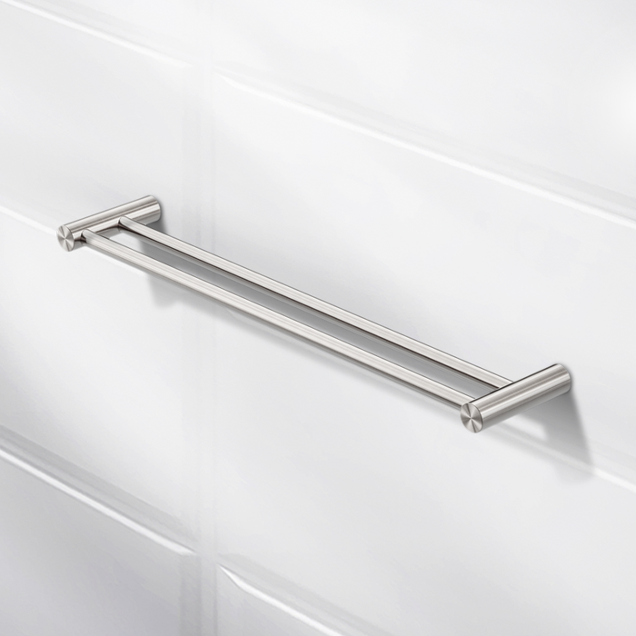 Nero Zen Double Towel Rail 600mm Brushed Nickel