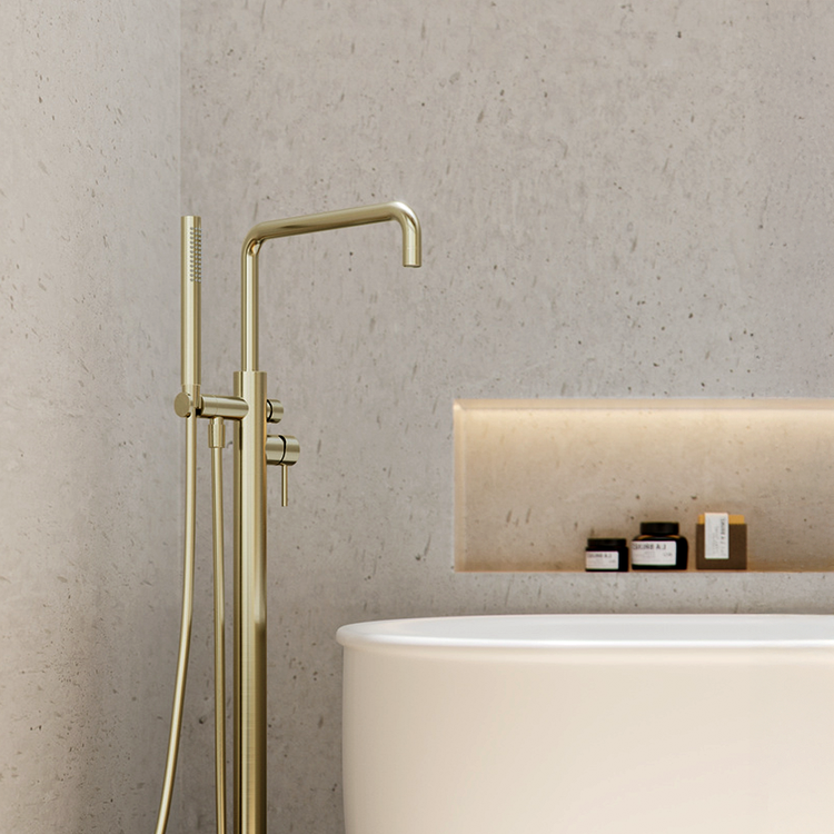 Nero Zen Freestanding Bath Mixer Brushed Gold