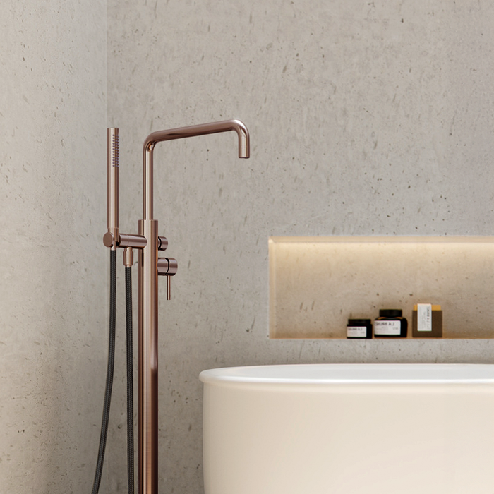 Nero Zen Freestanding Bath Mixer With Outdoor Shower Hose Brushed Bronze