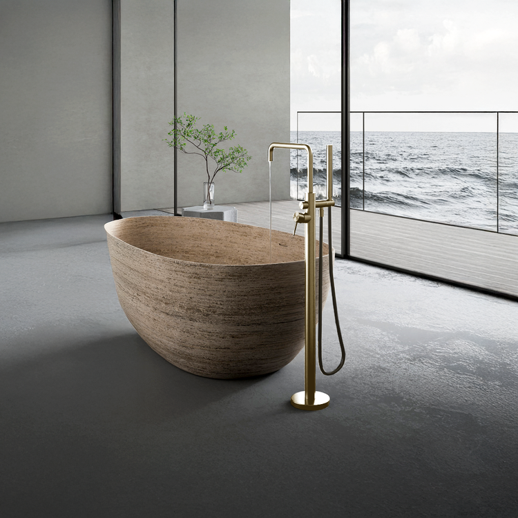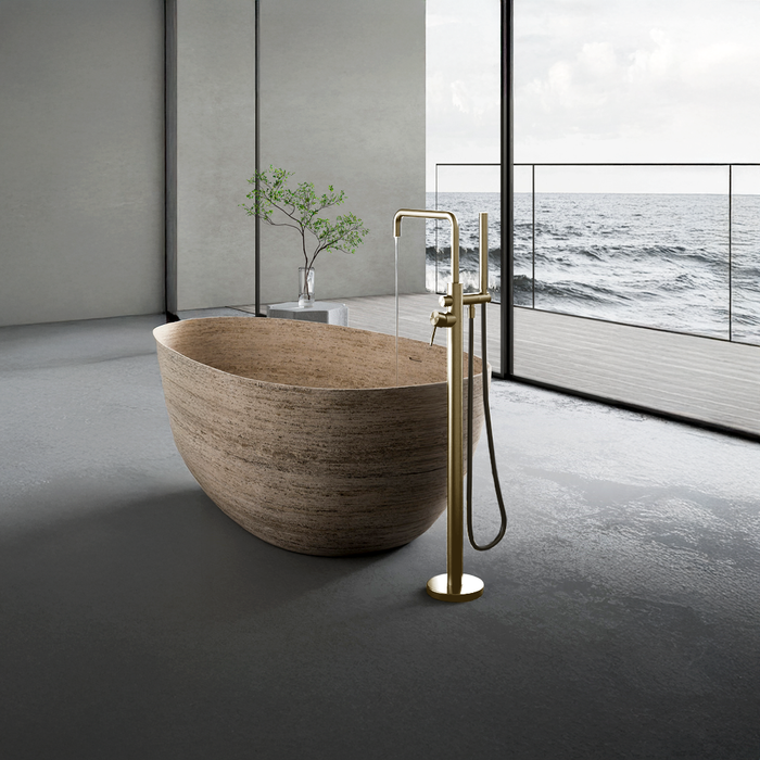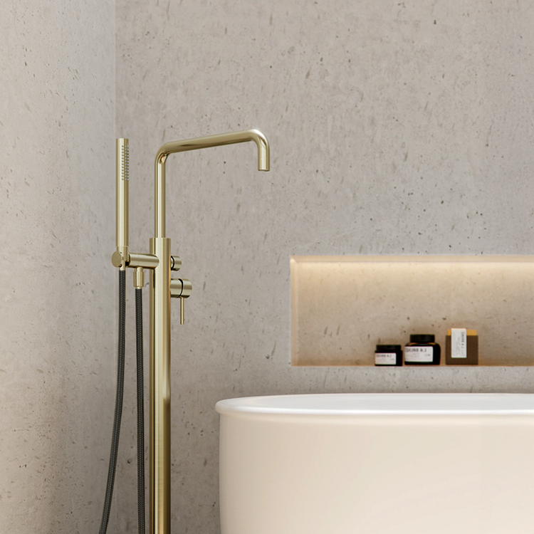 Nero Zen Freestanding Bath Mixer With Outdoor Shower Hose Brushed Gold