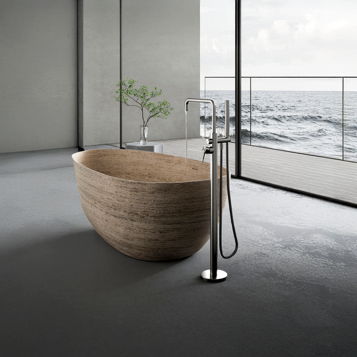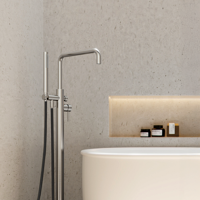 Nero Zen Freestanding Bath Mixer With Outdoor Shower Hose Brushed Nickel