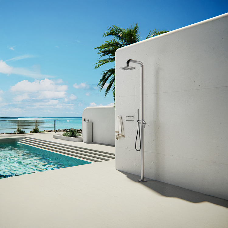 Nero Zen Outdoor Freestanding Shower Column Brushed Nickel