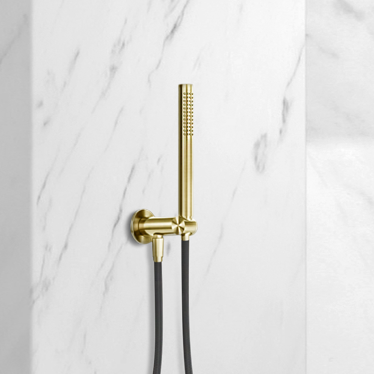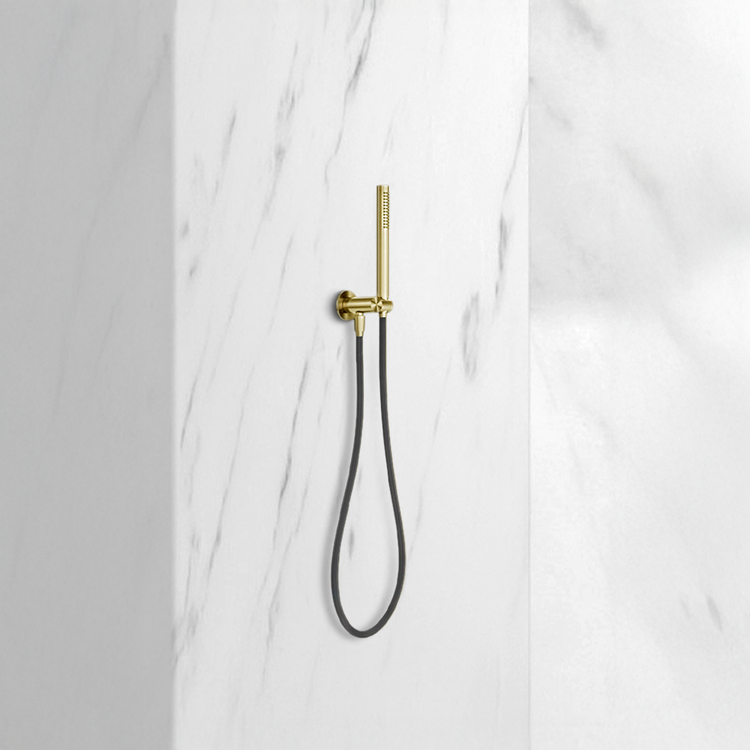 Nero Zen Shower On Bracket With Outdoor Shower Hose Brushed Gold