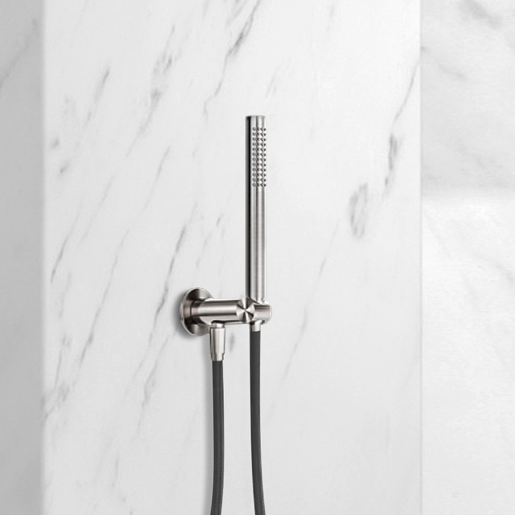 Nero Zen Shower On Bracket With Outdoor Shower Hose Brushed Nickel