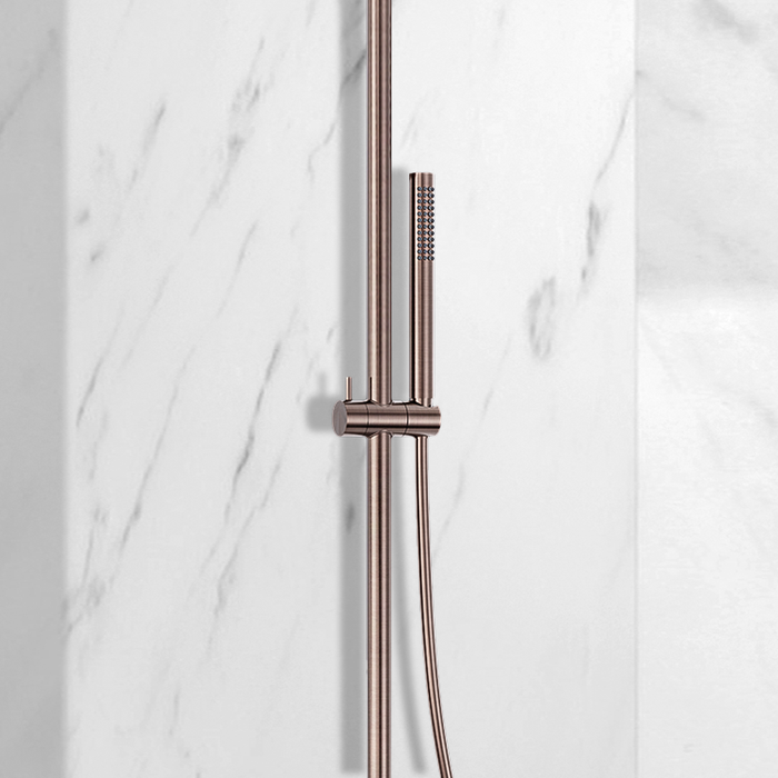Product TypeTwin Showers ColourBrushed Bronze Material316L Stainless Steel WELS RatingOverhead Shower 3 Star, 8L/Min, Hand Shower 3 Star, 8L/Min WELS Registration NoS18182 Read more