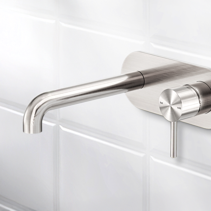 Nero Zen Wall Basin/Bath Mixer 185mm Spout Brushed Nickel